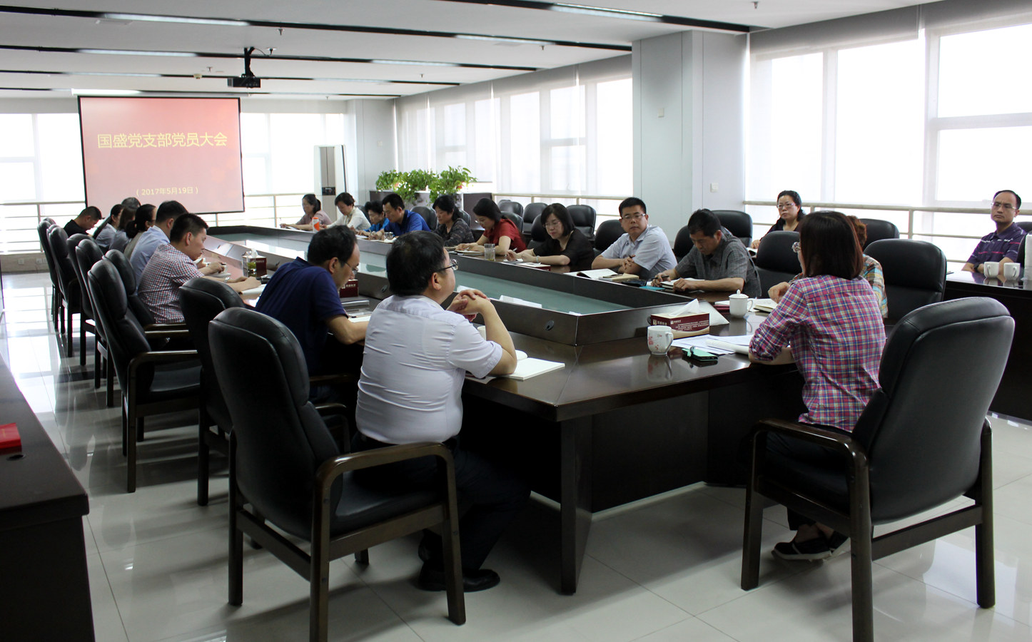 5月19日下午,国盛公司董事长赵丽主持召开国盛党支部党员大会,共30名党员参会。