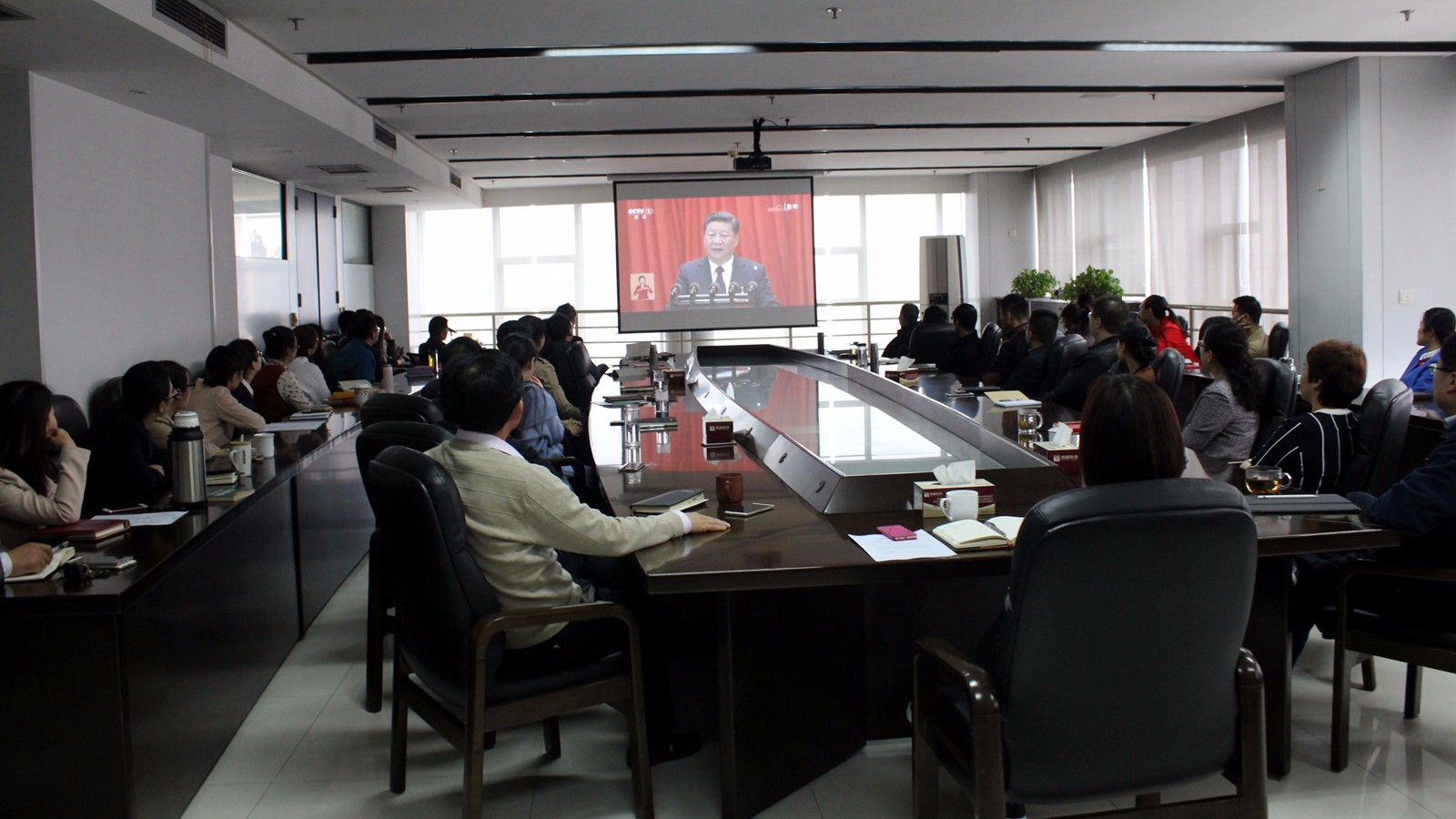 10月18日上午9时,中国共产党第十九次全国代表大会在北京人民大会堂隆重召开。国盛公司高度关注,组织全体干部职工集中收听收看党的十九大开幕直播盛况,认真聆听了习近平总书记代表第十八届中央委员会所做的报告。