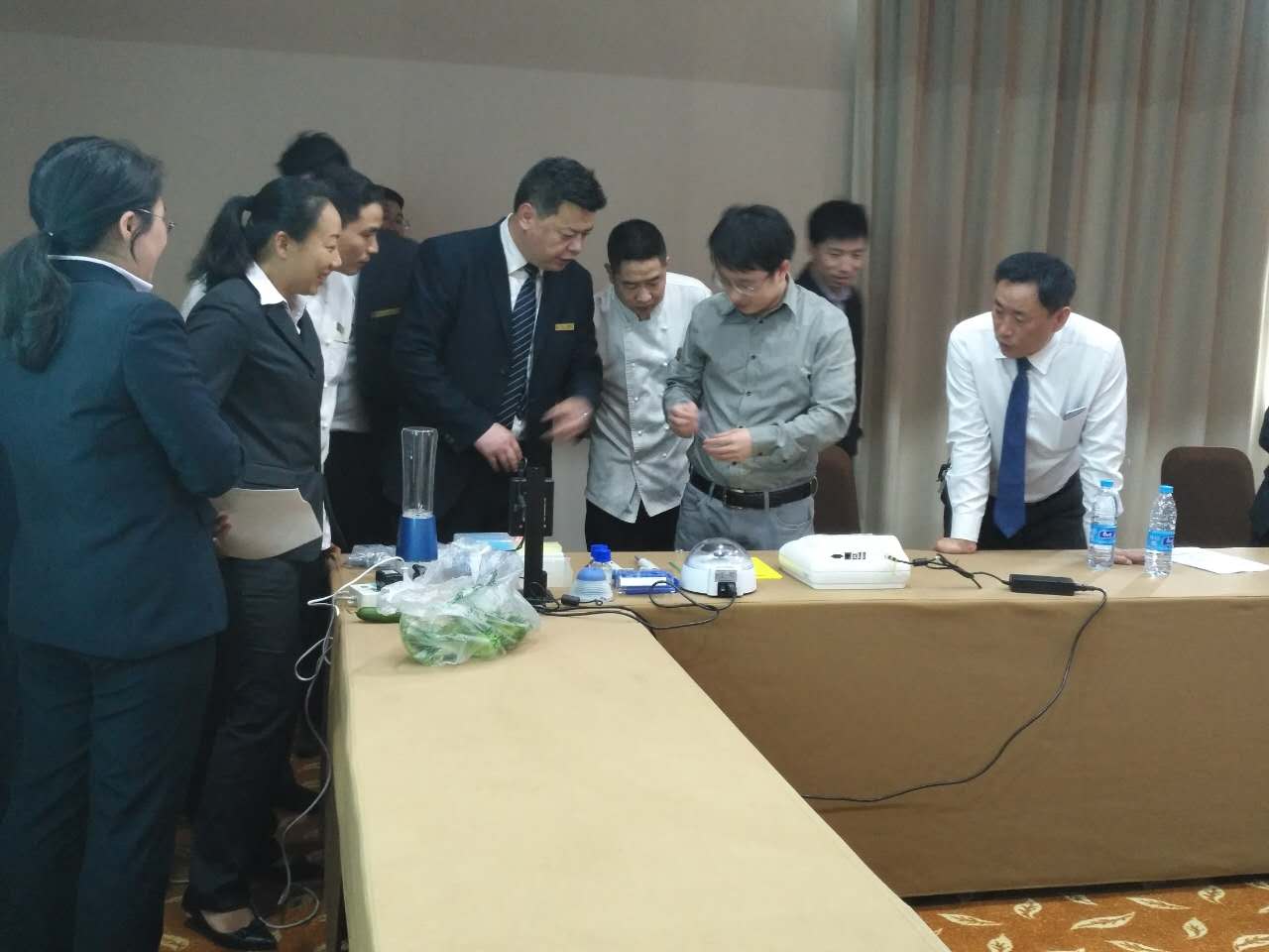 为进一步加强酒店食品安全的自检自控能力,4月19日下午,云泉山庄邀请国内最大的安检设备生产机构清华同方威视的专家,讲解了当前食品安全形势、食品安全检测技术及质量控制等热点问题,并现场操作RT5000食品安全快速检测仪对食材的检测方法。