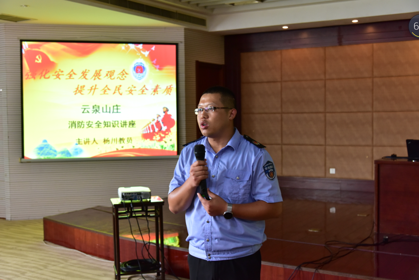 根据《市安全生产委员会关于开展全市安全生产大检查的通知》以及国盛公司安全管理要求,为进一步提高员工的消防安全意识,增强防火救火能力,8月14日下午,云泉山庄特邀徐州市安民防火中心杨川教员为全体员工开展消防安全知识培训。
