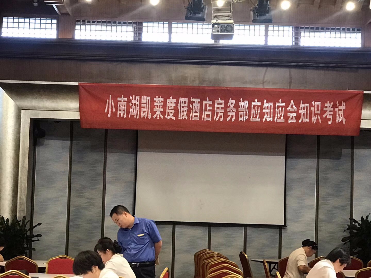 为进一步深入开展“岗位练兵、技能比武、知识更新”系列活动,强化员工服务意识,深化学习型组织建设,近日,国盛酒店组织客房部员工进行了应知应会知识考试。
