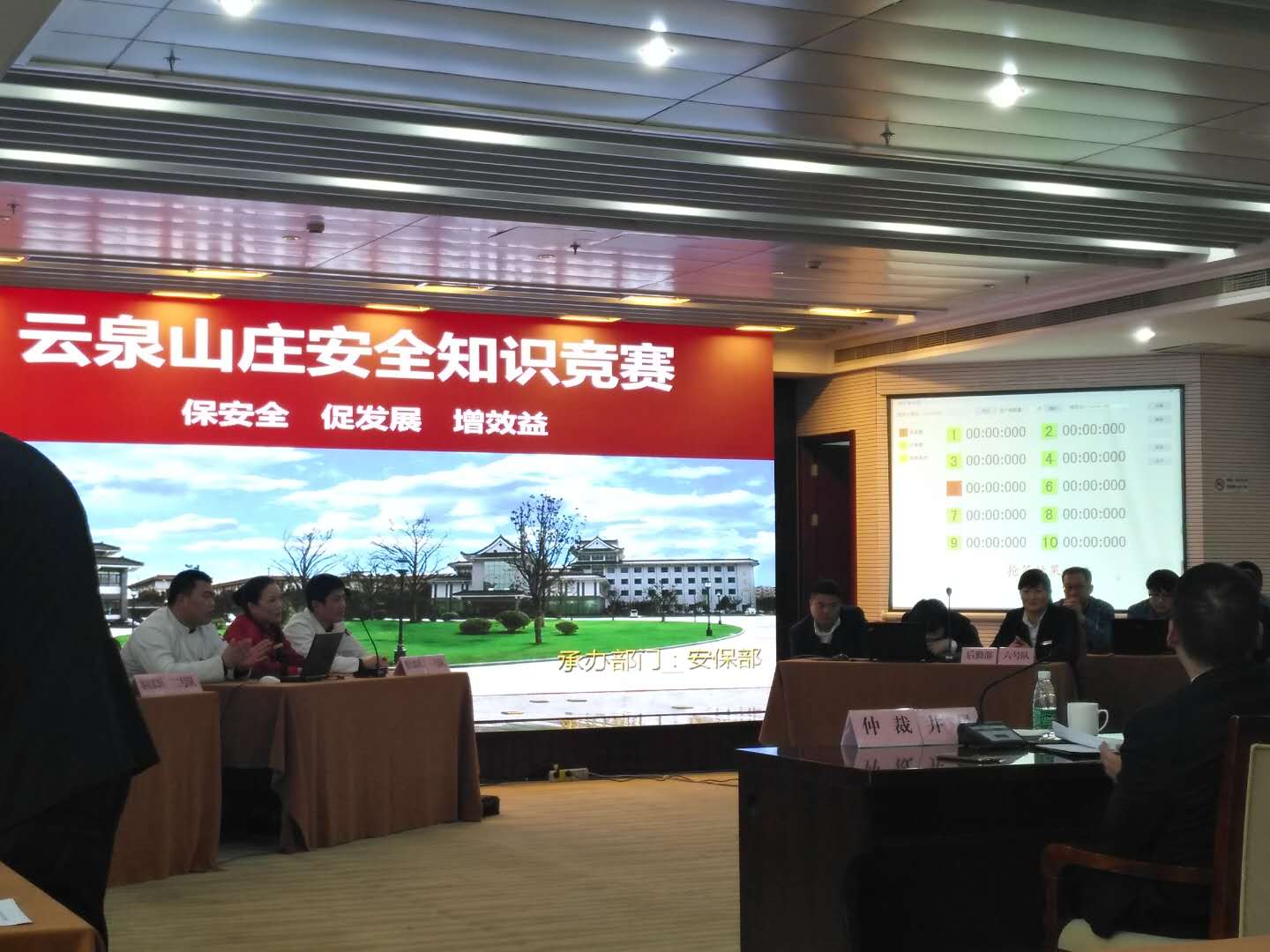 为进一步加强酒店安全管理工作,提高全员安全意识,近日,云泉山庄在多功能厅举办安全知识竞赛,共10支代表队参赛。